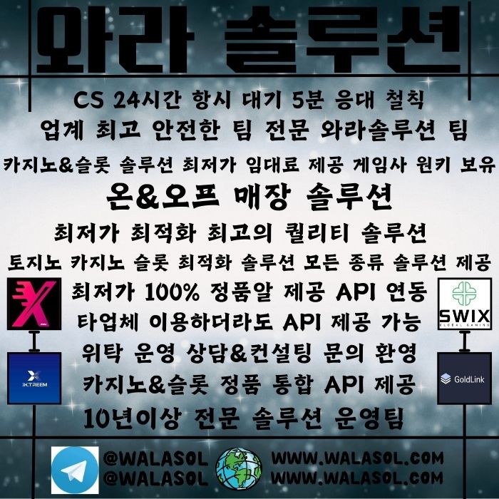 #카지노솔루션 #슬롯솔루션 #바카라솔루션 #홀덤솔루션 #토지노솔루션 #토토솔루션 #스포츠솔루션 #와라솔루션 #와라 #와라솔 #walasol #walasolution
