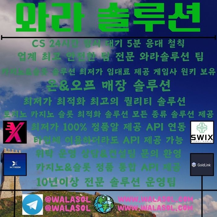 #카지노솔루션 #슬롯솔루션 #바카라솔루션 #홀덤솔루션 #토지노솔루션 #토토솔루션 #스포츠솔루션 #와라솔루션 #와라 #와라솔 #walasol #walasolution